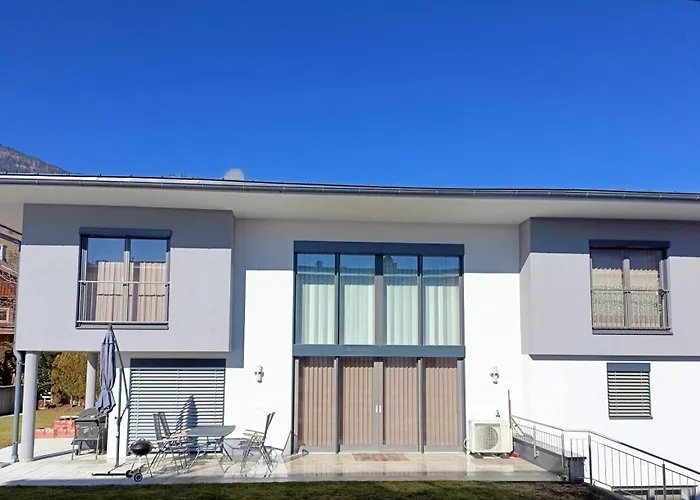 Situated only a 7-minute walk from the Spieljoch, Ek - Living Ferienhaus, 8 Personen - 550 M Zur Spieljochbahn - Zillertal Fuegen entices guests with snow skiing in the area. Located 2.8 km from the private Zillertal Golf Course, the holiday home boasts a terrace with views of the mountain.
